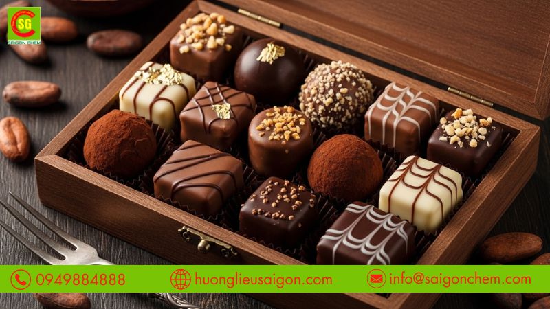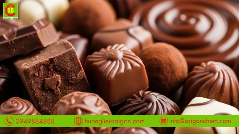 Trong ngành bánh kẹo, phụ gia này xuất hiện trong bánh quy, bánh bông lan, bánh trung thu, kẹo mềm và nhân kem. Khi trải qua quá trình nướng, hương socola cần có độ bền nhiệt tốt để không bị suy giảm mùi. Nhờ đó, thành phẩm sau khi ra lò vẫn giữ được hương thơm đặc trưng. Ngoài ra, nó còn giúp tăng chiều sâu cho lớp phủ hoặc nhân socola, tạo cảm giác đậm đà và rõ nét hơn khi thưởng thức.